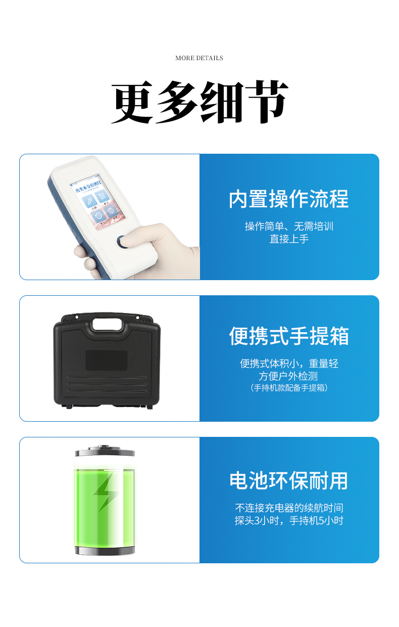 4. 不連接充電器的續(xù)航時間:探頭3小時。