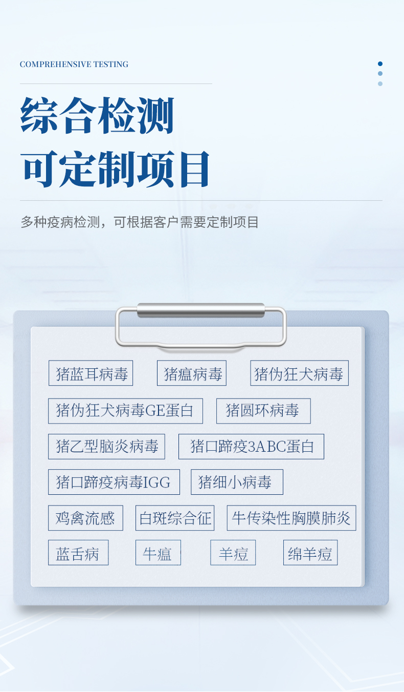 YP-SY96S動物疫病診斷儀是我公司在新推出的一款全新檢測儀器,該系統(tǒng)采用酶聯(lián)免疫吸附測定法與相應(yīng)試劑配合可定性或定量進行動物疫病快速診斷。如:豬藍耳病毒、豬瘟病毒、豬偽狂犬病毒、豬偽狂犬病毒gE蛋白、豬圓環(huán)病毒、豬乙型腦炎病毒、豬口蹄疫3ABC蛋白、豬口蹄疫病毒IgG、豬細小病毒、雞禽流感、藍舌病、白斑綜合征、牛傳染性胸膜肺炎、牛瘟、綿羊痘和山羊痘等等疫病檢測,并可根據(jù)客戶需要定制項目。