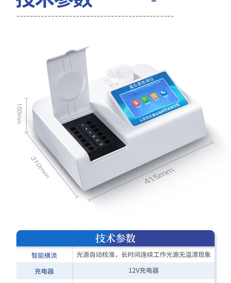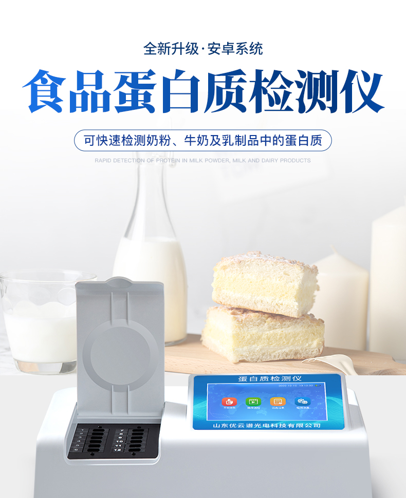 檢測項目:可快速檢測奶粉、牛奶及乳制品中的蛋白質(zhì),儀器預留其他項目檢測程序和端口,根據(jù)日后需求可方便的自主增加檢測項目。