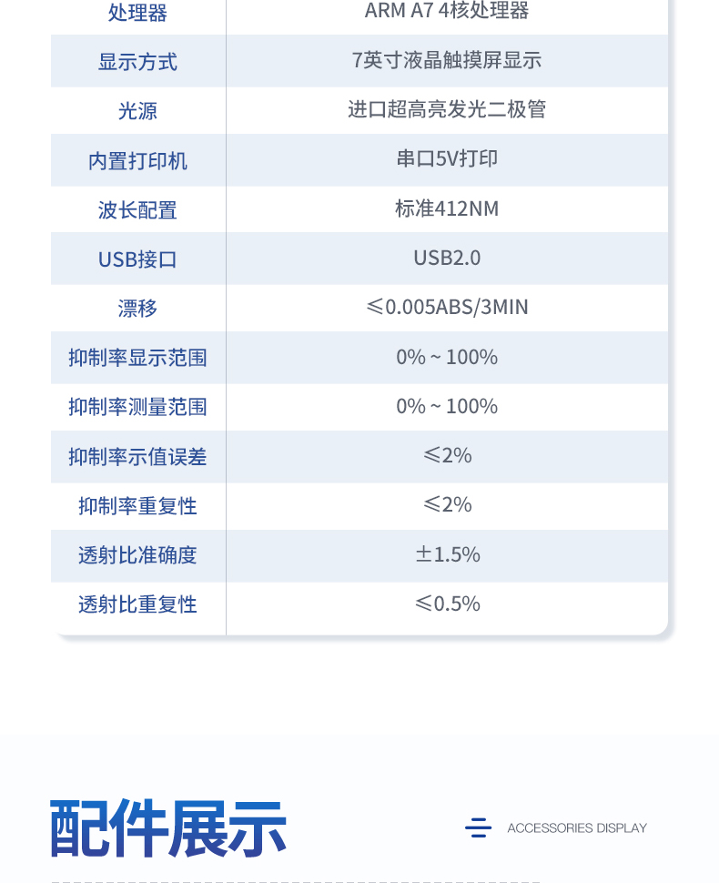 3. 光路系統(tǒng):采用進口超高亮發(fā)光二極管,光源和檢測器采用全固態(tài)結(jié)構(gòu),準確度和精密度高、穩(wěn)定性強、光源可控;采用光源自動開關(guān)節(jié)能設計,光源使用壽命達10萬小時以上。