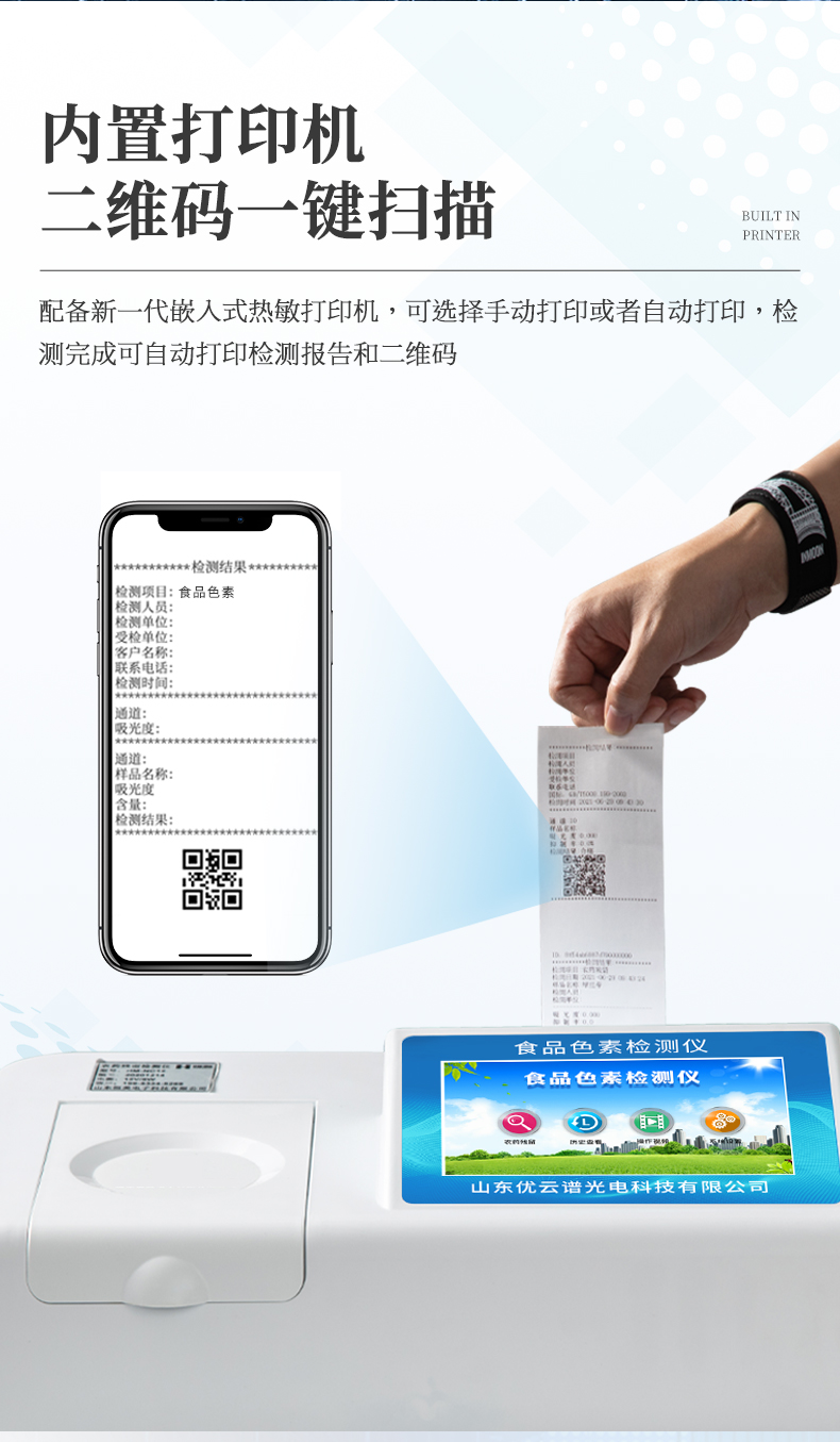 3、配備新一代嵌入式熱敏打印機(jī),可選擇手動(dòng)打印或者自動(dòng)打印,檢測(cè)完成可自動(dòng)打印檢測(cè)報(bào)告和二維碼。