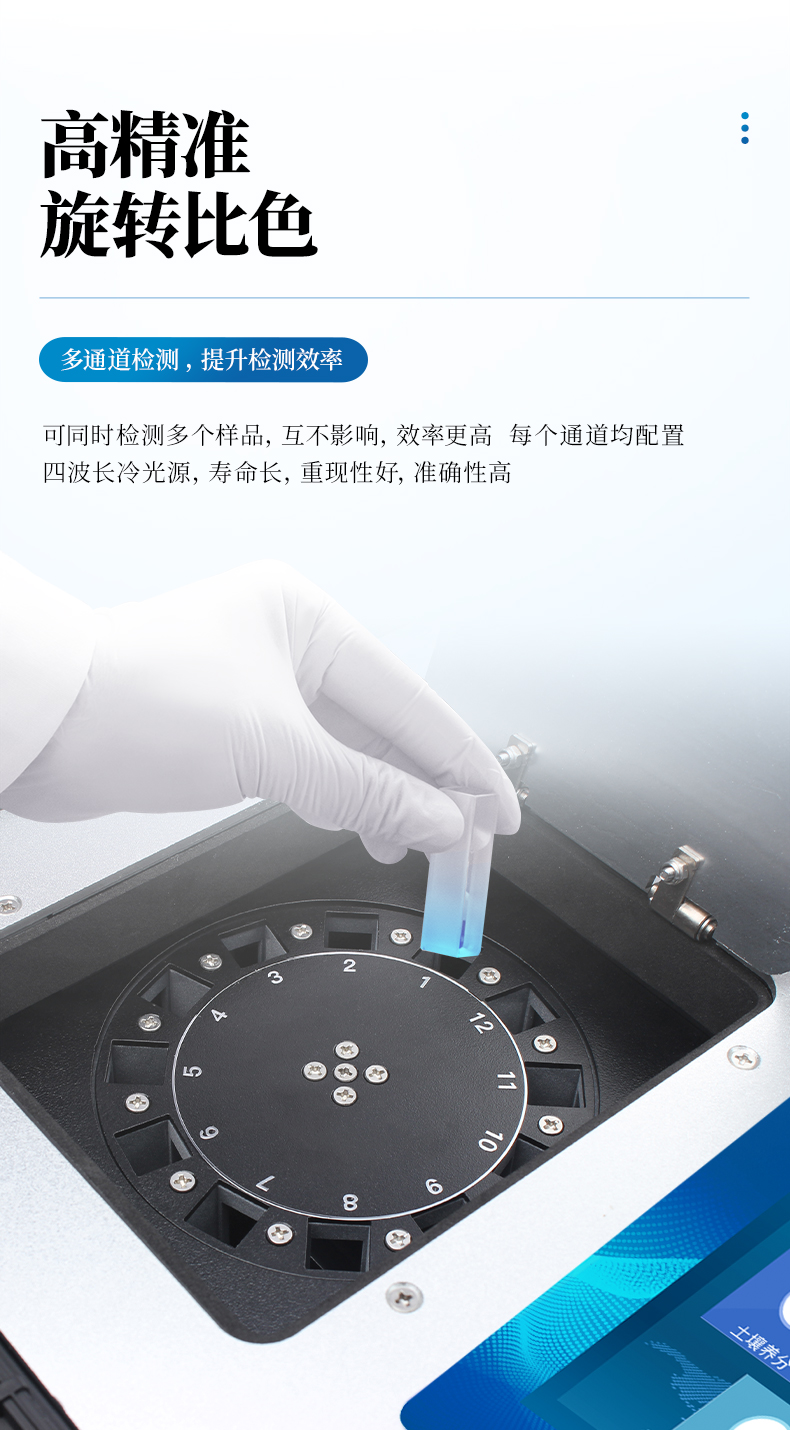 3、8個旋轉檢測通道,一次性可快速檢測8個樣品,極大提升檢測效率,降低檢測成本。