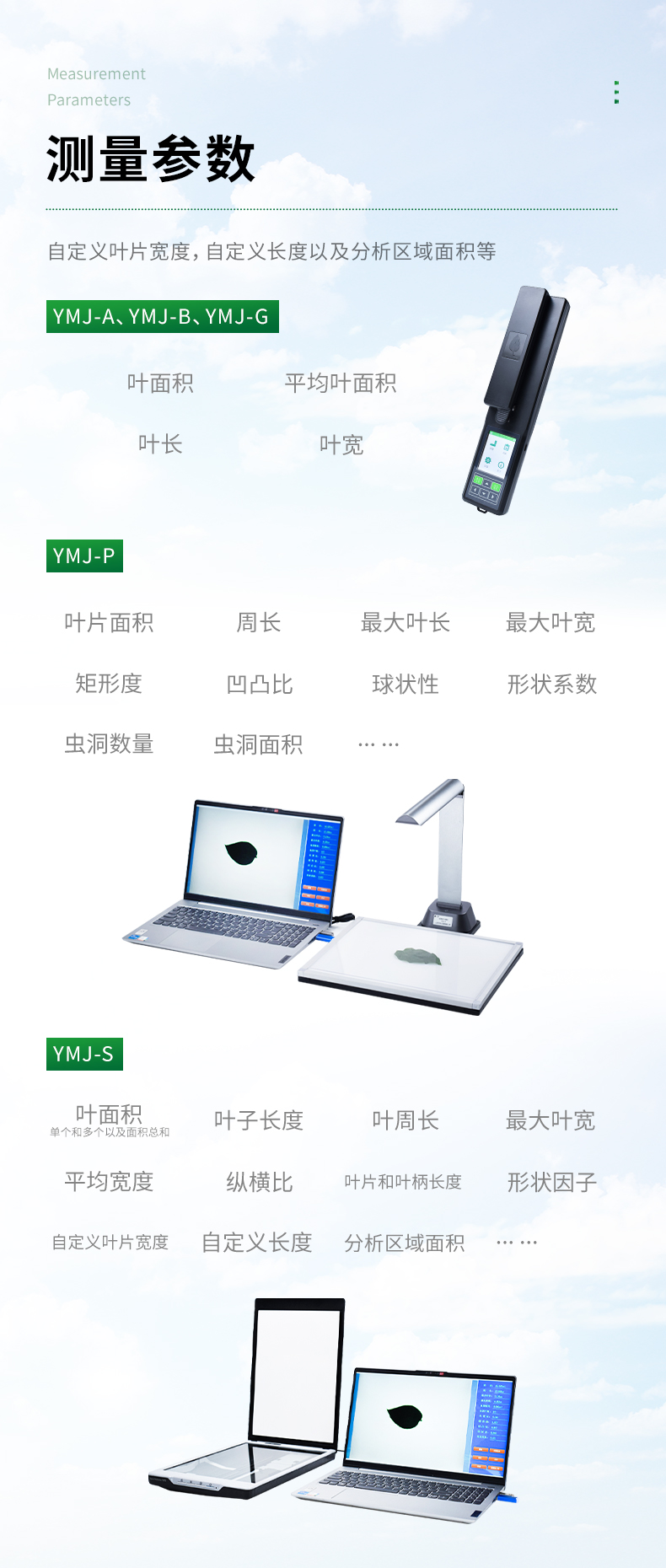 YMJ系列葉面積測量儀是一種使用方便、可以在野外工作的便攜式儀器。可以精確、快速、無損傷地測量葉片的葉面積及相關參數,也可對采摘的植物葉片及其它片狀物體進行面積測量。廣泛應用于農業、氣象、林業等部門。