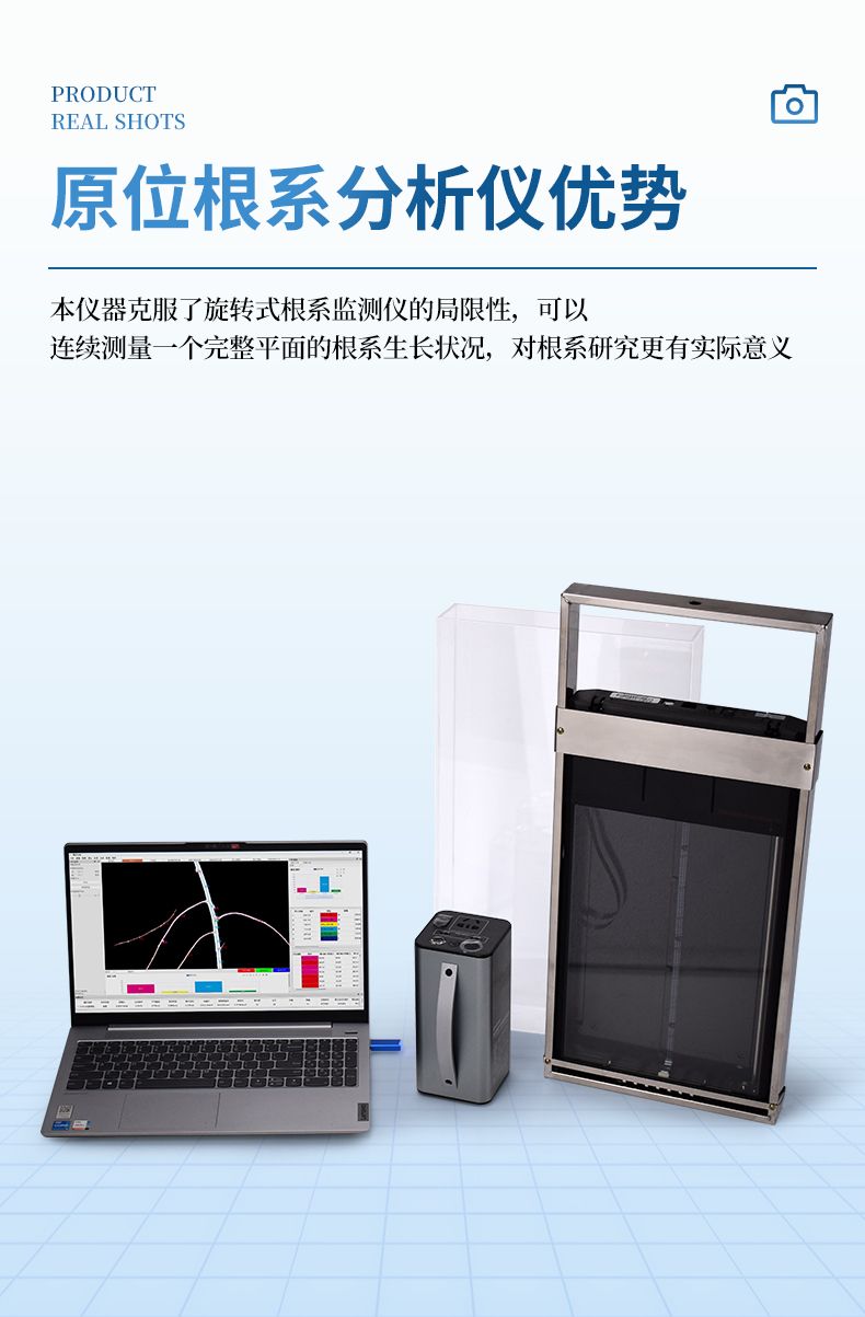 平面原位根系監測系統是一款土壤根系原位平面多層次圖像監測儀,可獲取土壤、根系側面剖面圖像,監測土壤中活體根系的生長狀態,可獲取高分辨率圖像用于分析根系的詳細結構。