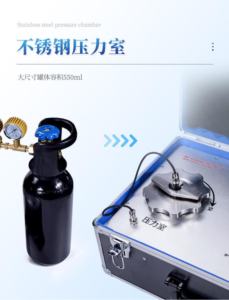 植物在土壤——植物——大氣的連續系統中,植物的根莖不斷從土壤中吸收水分,而葉片又不斷地向周圍環境蒸發散失掉水分,在這種水勢的梯度系統中,植物的根——莖——葉之間也一定存在著水勢梯度關系,使木質導管中的細小水柱受空氣低水勢的負壓影響,形成水分向上運輸的拉力。當植物枝條或葉片被切下時,導管中這種被拉緊的水柱斷裂,水柱會從切口處向上端內部收縮。將切下的材料裝入儀器的壓力室內(操作程序見下章節),使切口的一端伸出室外密封起來,然后加壓,使枝條或葉片內的張力重新平衡,把小水柱推回恰好到切口表面為止,此時水滴檢測探頭自動檢測水滴的滲出,自動鎖存測量數據。儀器顯示的壓力值就是當前植物的水勢值。