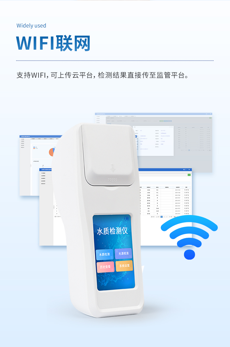 ②配置云監(jiān)控平臺(tái),檢測(cè)結(jié)果可直接無(wú)線傳至平臺(tái),進(jìn)行水質(zhì)長(zhǎng)短期分析,輔助管理。