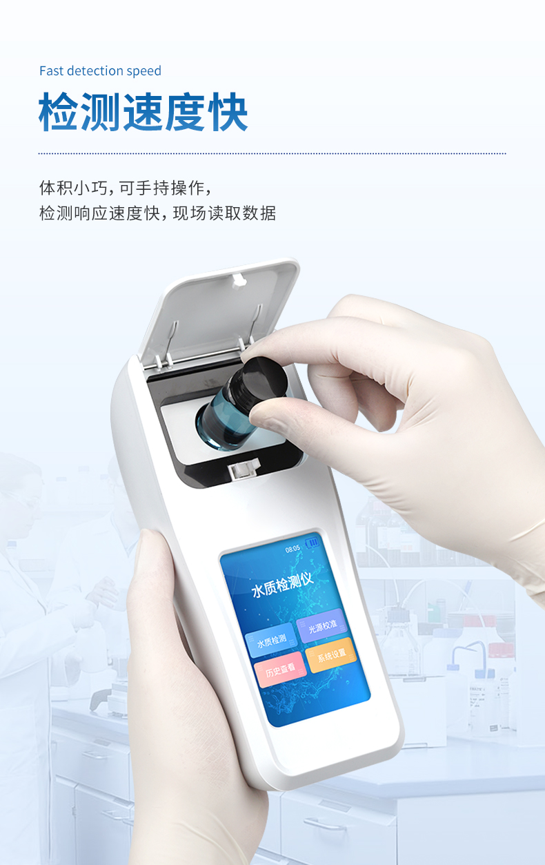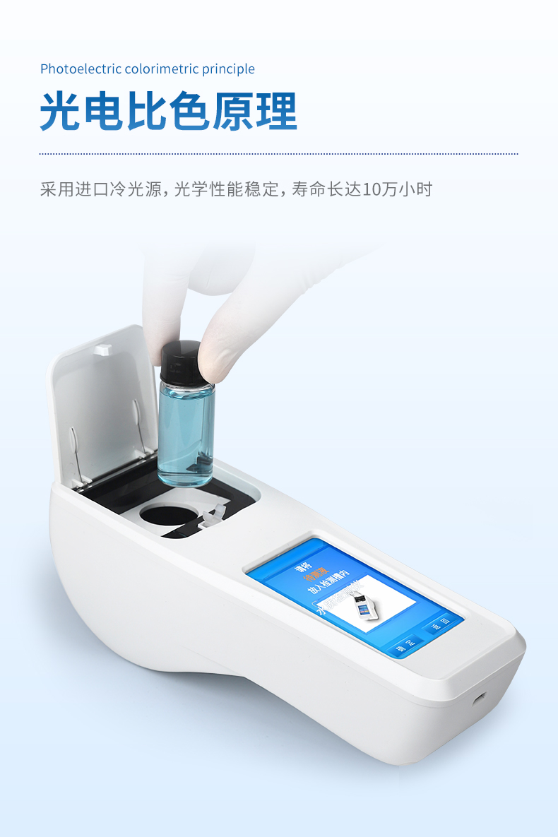 便攜式多參數(shù)水質(zhì)檢測(cè)儀是一款適用于純凈水廠、自來(lái)水廠、生活污水處理廠、工業(yè)污水、水產(chǎn)養(yǎng)殖、河流監(jiān)測(cè)、游泳場(chǎng)館、水源保護(hù)、生產(chǎn)監(jiān)測(cè)、科研實(shí)驗(yàn)等領(lǐng)域的檢測(cè)儀,配合快速顯色檢測(cè)試劑,可“快速、簡(jiǎn)單、準(zhǔn)確、穩(wěn)定”進(jìn)行測(cè)量,擁有精美的外觀造型,簡(jiǎn)單的操作界面,準(zhǔn)確的檢測(cè)系統(tǒng),幫助用戶獲得精細(xì)的數(shù)據(jù),可更準(zhǔn)確、有效的分析水體狀況。