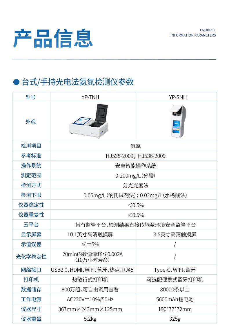 | 10 | 氨氮 | 0~100mg/l,0~1000.00mg/l | 離子選擇電極法 | ±1mg | 0.01mg | ? | 量程可選 |