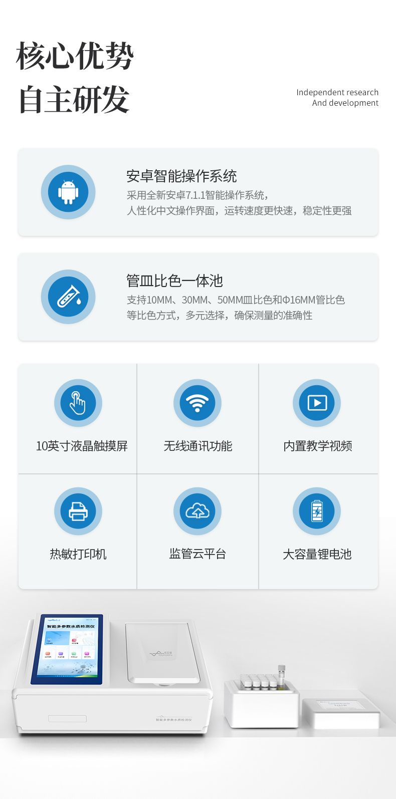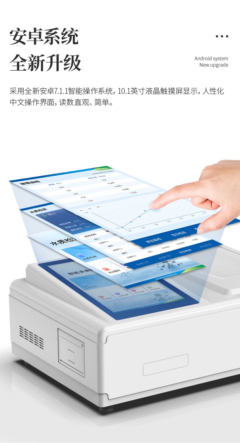 多參數水質重金屬檢測儀是完全參考國家標準、環境標準等相關標準設計制造,適用于國內外眾多檢測標準。 主要檢測水質六價鉻、總鉻、鉛、鎘、汞、砷、銅、總銅、鋅、總鋅、鐵、總鐵、鎳、總鎳、錳、總錳、鈦、釩、銀、鋁、錫、鈹、鋇、銻、鈷等重金屬含量指標;本儀器兼具智能數據分析功能,圖表、列表顯示數據,分析一目了然;高清晰度彩色液晶觸摸顯示屏,Android智能操作系統,中文顯示界面,中英文鍵盤,人性化操作,使用更簡單。
