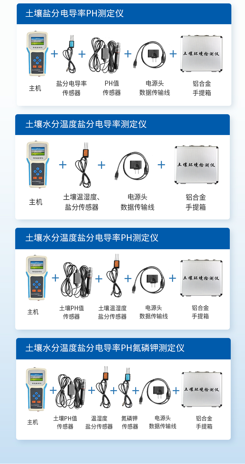 土壤水分溫度鹽分PH測(cè)定儀采用一體化結(jié)構(gòu)設(shè)計(jì),可快速準(zhǔn)確測(cè)量土壤中含水量、溫度、電導(dǎo)率(鹽分)、酸堿度,可對(duì)多處樣地、不同土壤深度的水分含量溫度鹽分和PH進(jìn)行快速檢測(cè)和長(zhǎng)期連續(xù)監(jiān)測(cè)。