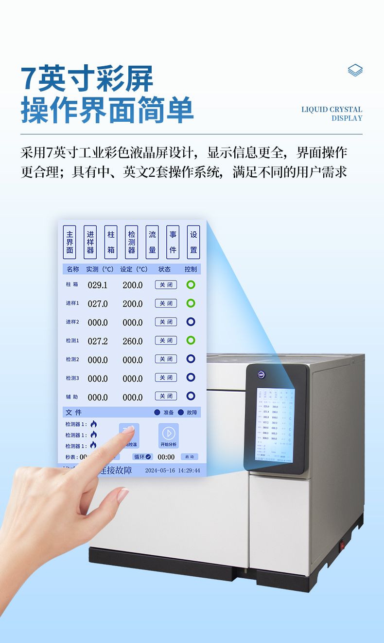 | 主要特點 | 1、采用7寸工業彩色液晶屏設計,顯示信息更全,界面操作更合理;具有中、英文2套操作系統,滿足不同的用戶需求; 2、采用了先進的10/100M自適應以太網通信接口、內置IP協議棧,實現遠程控制。 3、模塊化的結構設計,便于升級; 4、系統配置自動進樣器接口,內置多款驅動程序,可隨時加裝自動進樣器; 5、具有界面簡單、數據處理功能強大,實現GC整套分析管理工作的嚴謹及高效自動化; 6、智能控制后開門系統,自動跟蹤溫度并動態調整 ,風門角度,即使室溫附近也可實現精密的溫度控制; 7、超溫保護功能:任一路超過設定的溫度,儀器自動斷電并報警。 | |||