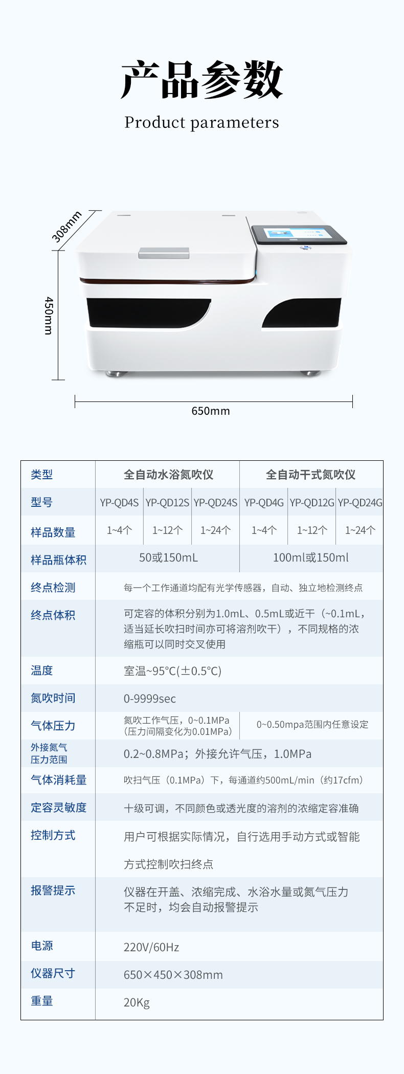 全自動多功能干式氮吹儀YP-QD24G是我司結(jié)合實驗室使用需求,從使用者方便安全快捷穩(wěn)定等多角度共同開發(fā)的新型濃縮定容產(chǎn)品,產(chǎn)品擺脫了常規(guī)市場上利用水浴加熱揮發(fā)而導(dǎo)致樣品進(jìn)行污染的弊端,確定樣品的安全性與準(zhǔn)確性,具有無人值守、準(zhǔn)確定容、大批量濃縮的特點,可多組數(shù)據(jù)儲存功能,實現(xiàn)了全自動化的定量及批量濃縮,濃縮全程,讓繁瑣的濃縮過程變得靈活、省心、高效和安全。