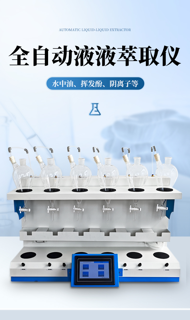 全自動液液萃取儀采用新封閉式靜音潔凈空氣內(nèi)循環(huán)震蕩原理,雙向氣液混合技術(shù),用于實驗室水質(zhì)檢測水中油、揮發(fā)酚、陰離子等項目的液液萃取前處理,適用于水質(zhì)監(jiān)測中的水中石油類等需要液液萃取的場合、中藥材中農(nóng)藥殘留量的測 定。儀器由萃取瓶、氣液泵及控制部分組成。代替人工搖晃,減輕實驗人員的勞動強度, 提高萃取效率,使分析結(jié)果穩(wěn)定更可靠。設(shè)備通過大液晶觸摸屏顯示和設(shè)置多項萃取參數(shù)以滿足不同樣品的萃取要求,實驗過程無需人工看管,設(shè)備實現(xiàn)自動萃取,自動放氣,自動收集,自動排液,自動清洗等功能