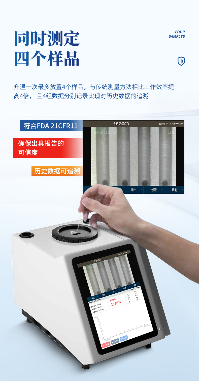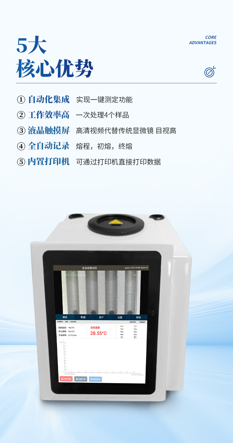 程,自動檢測實時圖譜顯示,方便用戶準確測得樣品熔點、沸點、濁點、滑點。