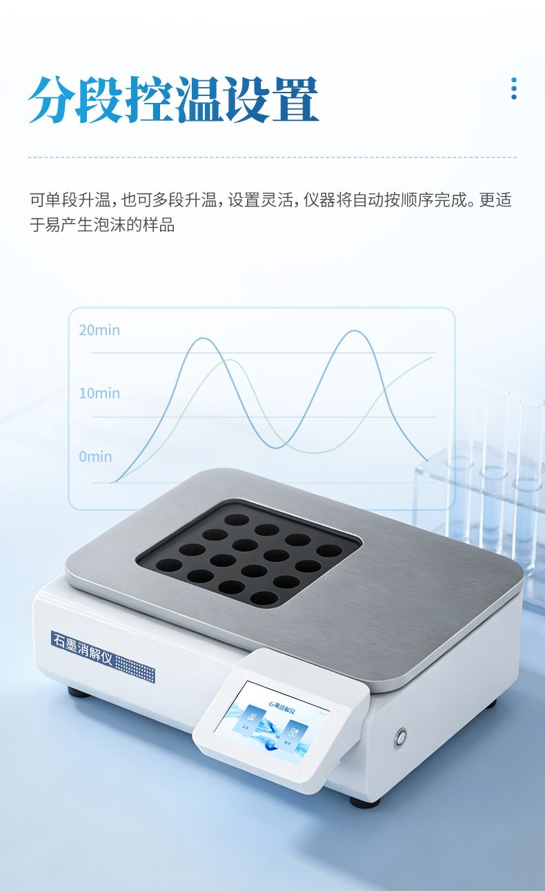 石墨消解儀作為高效的實驗室樣品前處理平臺,廣泛適用于環境監測(土壤、污水、固廢中重金屬消解)、食品與農產品檢測(糧食、肉類中微量元素分析)、農業地質(肥料、飼料、巖石成分分析)以及產品質量控制與科研教學等諸多領域,是各類實驗室進行濕法消解與熱浸提的理想工具。