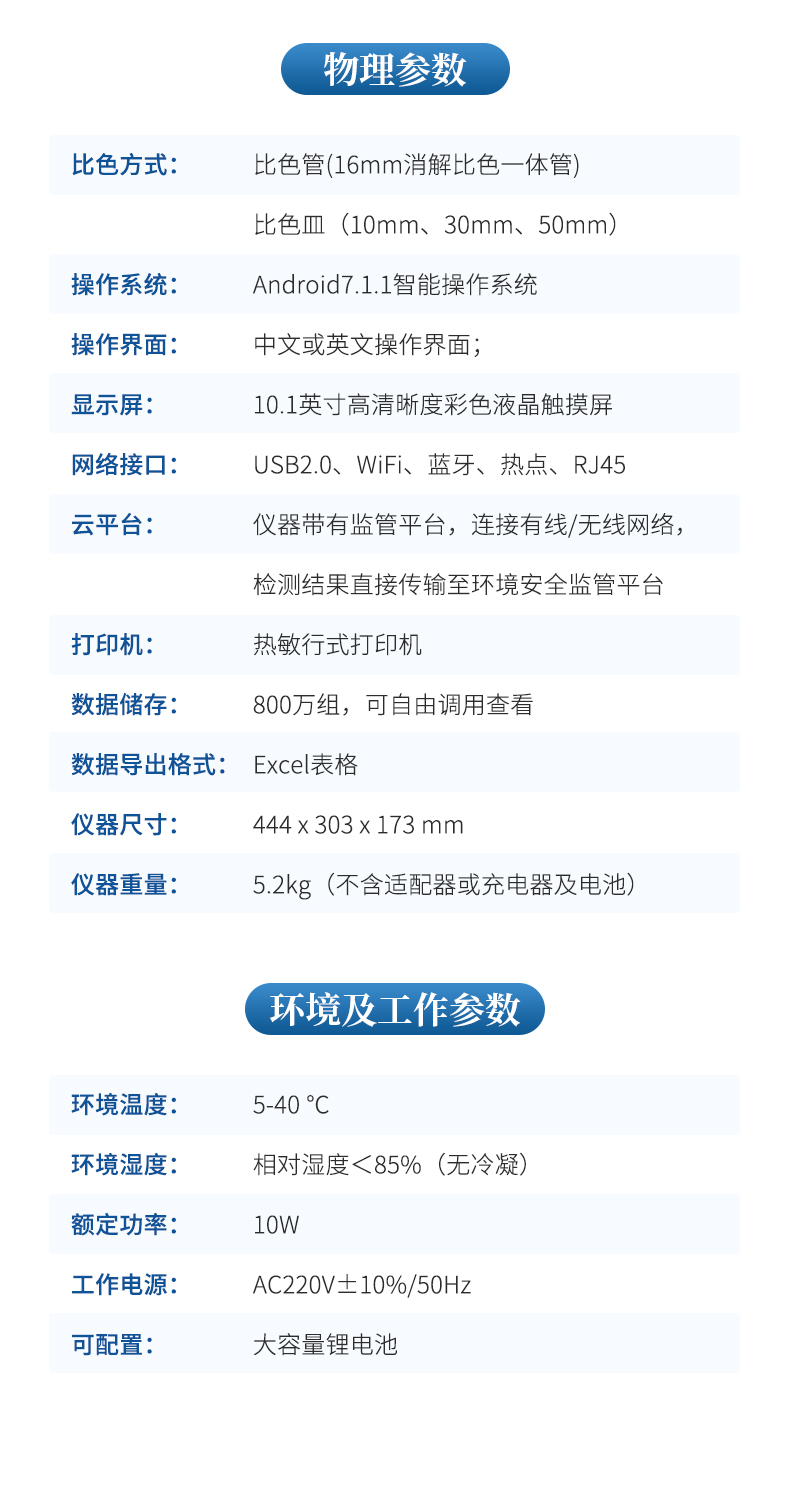 云平臺(tái):儀器帶有監(jiān)管平臺(tái),連接有線/無線網(wǎng)絡(luò),檢測結(jié)果直接傳輸至環(huán)境安全監(jiān)管平臺(tái)。