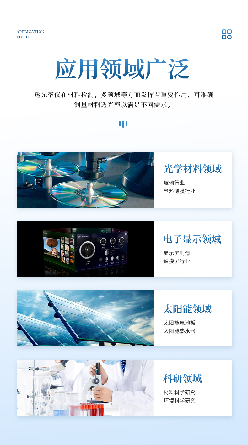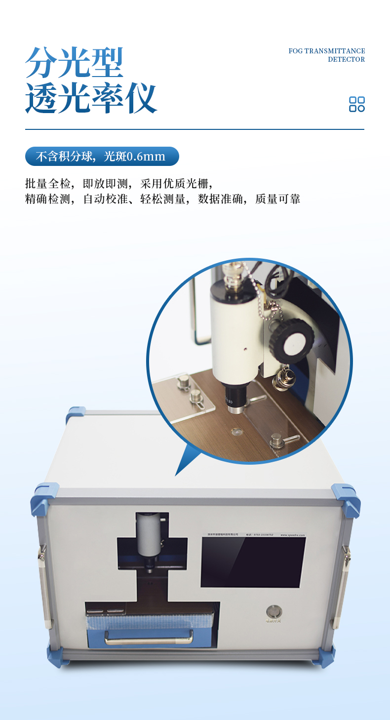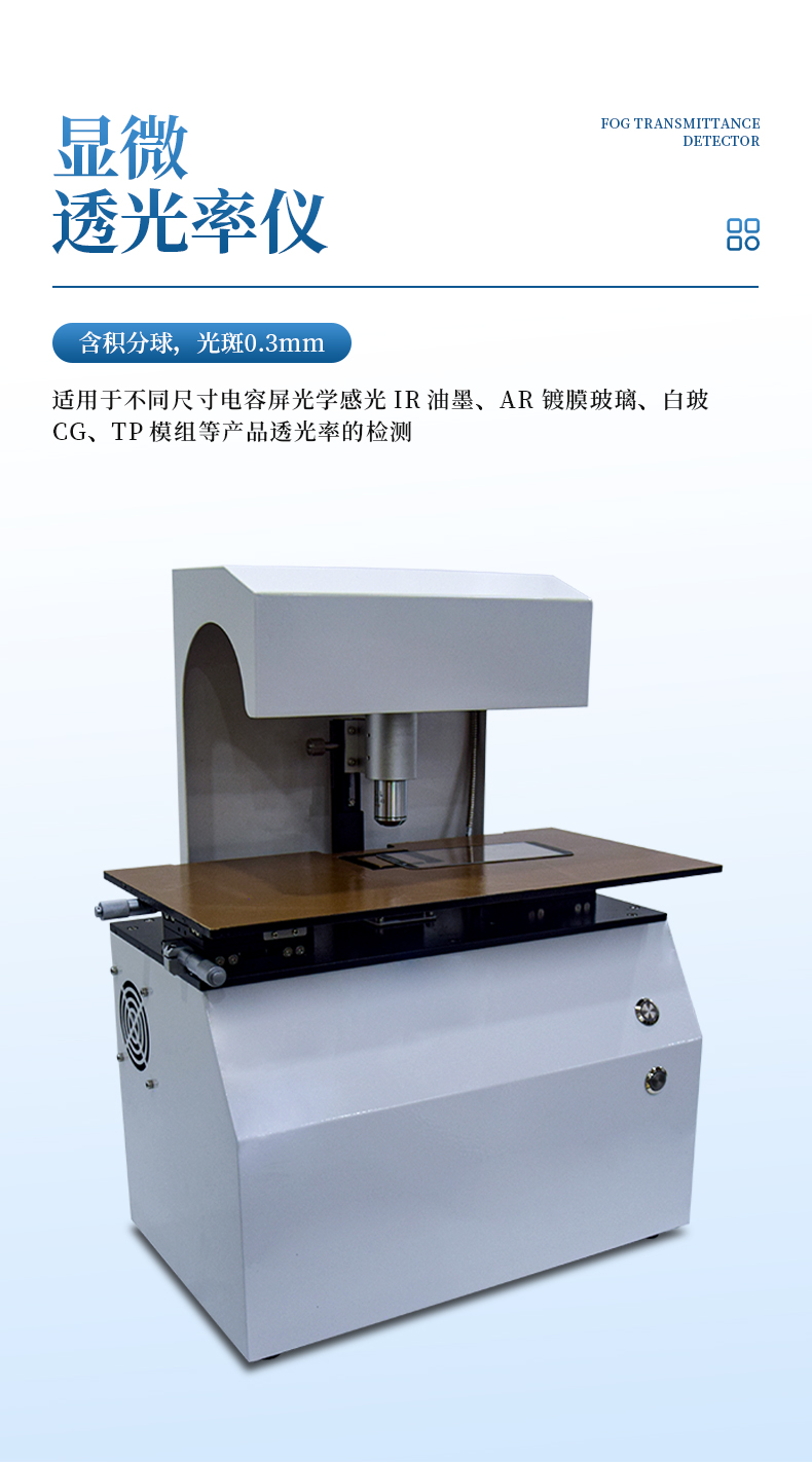 適用于不同尺寸電容屏光學感光IR油墨、AR 鍍膜玻璃、白玻CG、TP模組等產品透光率的檢測,尤其適用于IR油墨與ICON(圖標)快速實時多波長透光率測量。