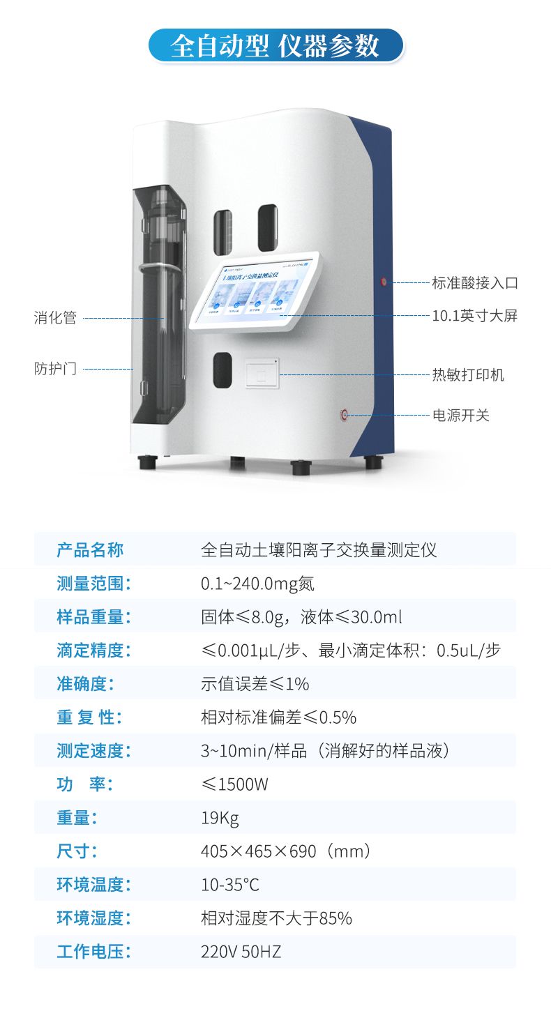 土壤陽離子交換量測定儀是一種專門用于測量土壤陽離子交換量(CEC:土壤膠體能夠吸附各種陽離子的總量)的專業設備。利用電化學原理來工作,通過向土壤樣品施加一定條件下的溶液,并測量土壤顆粒表面吸收的陽離子與溶液中的陽離子進行交換的能力。