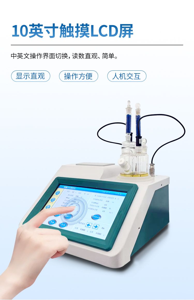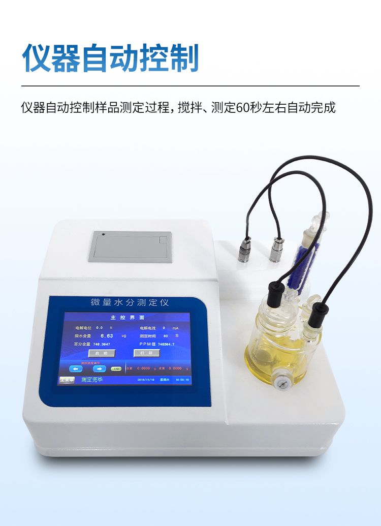 3.儀器采用全密封滴定池瓶,避免試劑與人接觸,杜絕環境濕度對檢測的影響;檢測過程中儀器自動控制,攪拌、測定60秒左右完成,可直接顯示測定結果,無需人員頻繁操作。