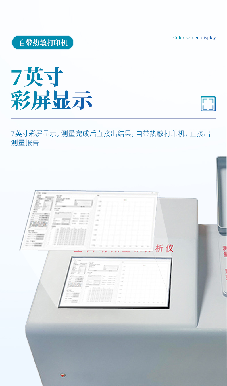 7寸彩屏顯示,測量完成后直接出結(jié)果,自帶熱敏打印機(jī),直接出測量報告。