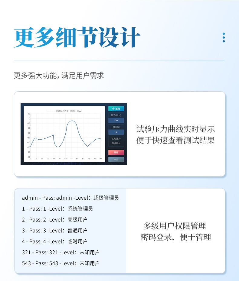 4. 試驗曲線實時展示試驗過程中壓力的變化趨勢,試驗數據智能統計;