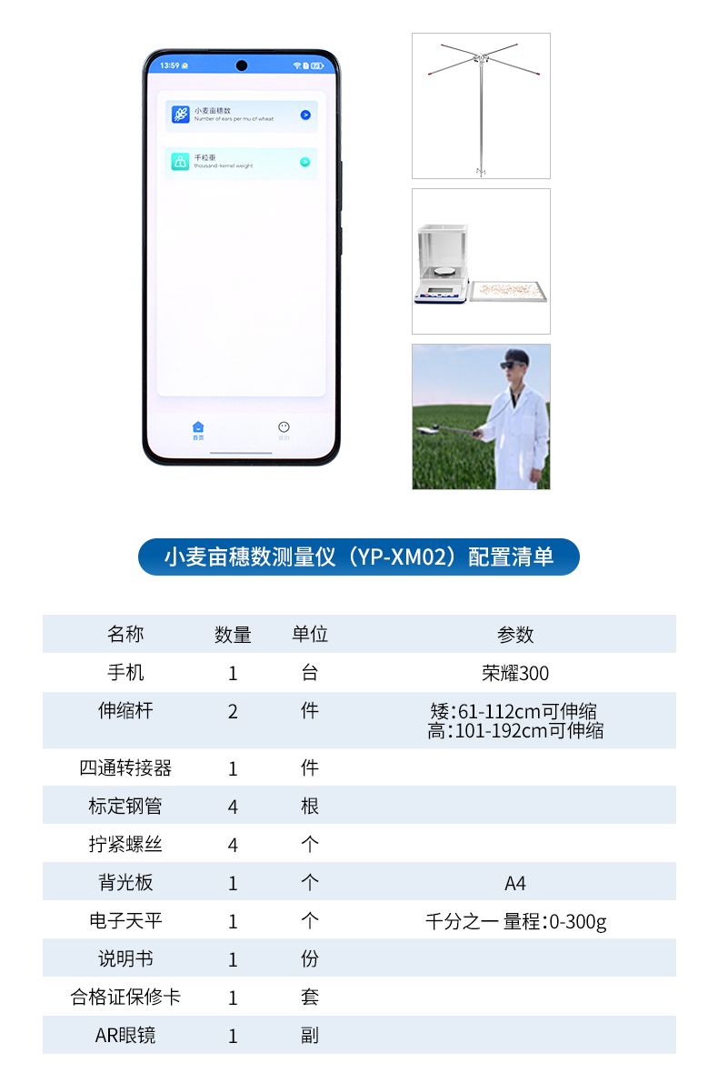 本設備適用于田間調查、育種選育、產(chǎn)量預估等多種應用場景,為小麥的品種篩選、小麥產(chǎn)量預測、產(chǎn)量基因定位和功能解析發(fā)揮著至關重要的作用。可顯著減少人工計數(shù)帶來的誤差與勞動強度。用戶只需在田間選定樣方區(qū)域,拍攝圖像后即可自動獲得畝穗數(shù)估算結果,是農(nóng)業(yè)數(shù)字化與智能化發(fā)展的有力工具。