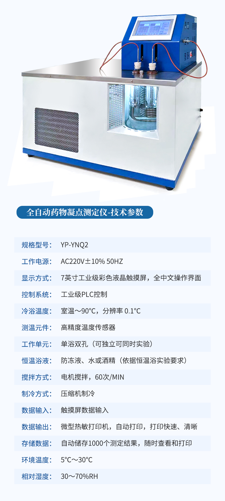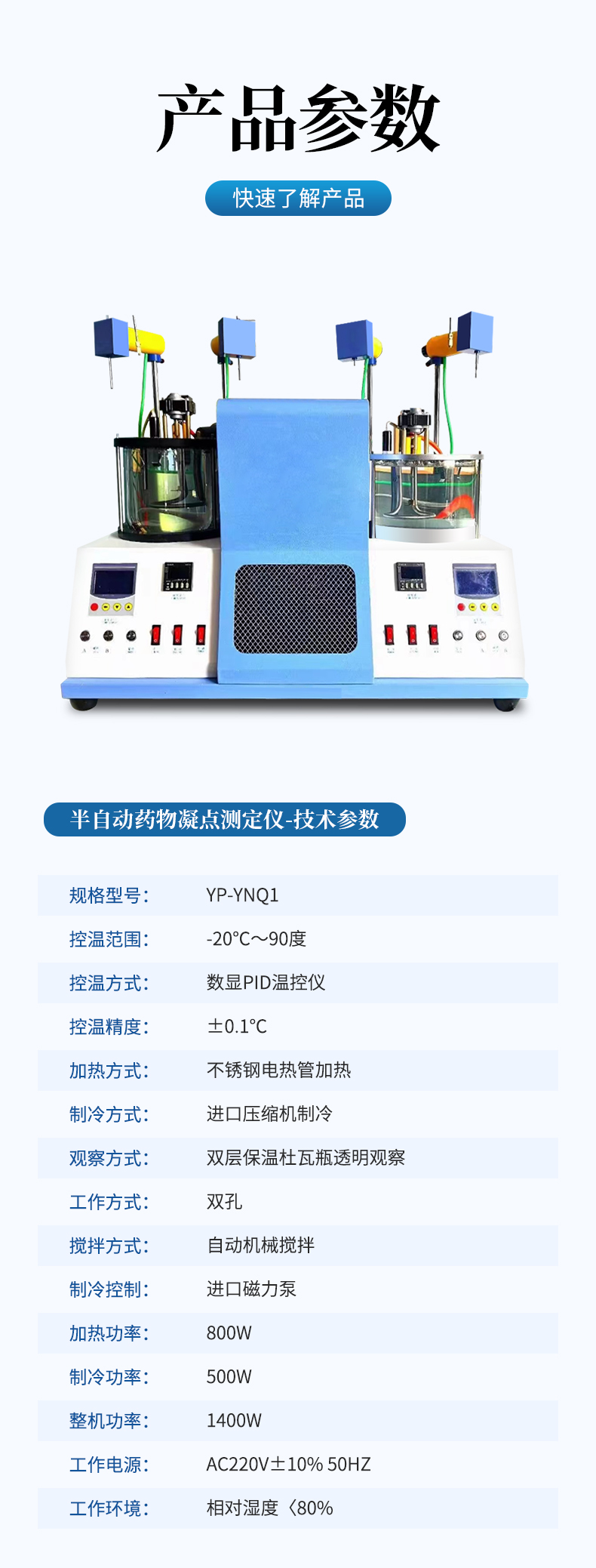 本儀器按《中華人民共和國(guó)藥典》2020年版四部 通則 0613凝點(diǎn)測(cè)定法設(shè)計(jì)制造,測(cè)定藥物由液體凝結(jié)為固體時(shí)候,在短時(shí)間內(nèi)停留不變的最高溫度。某些藥品具有一定的凝點(diǎn)、純度變更,凝點(diǎn)亦隨之改變。測(cè)定凝點(diǎn)可以區(qū)別或檢查藥品的純雜程度。