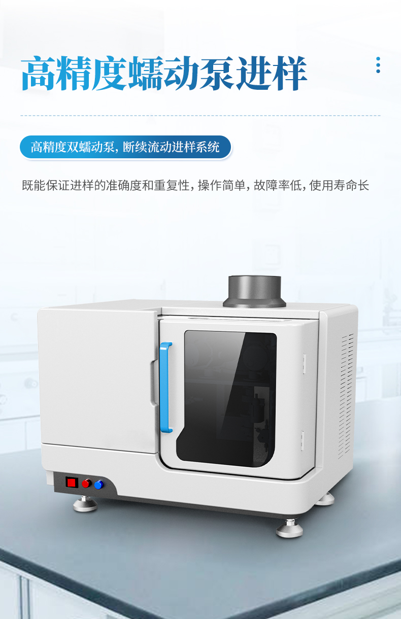采用高精度雙蠕動泵斷續流動進樣系統,既能保證進樣的準確度和重復性,操作簡單,故障率低,使用壽命長。