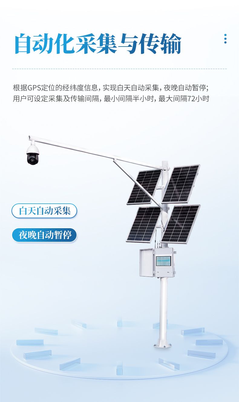 5. 自動(dòng)化采集與傳輸:根據(jù)GPS定位的經(jīng)緯度信息,實(shí)現(xiàn)白天自動(dòng)采集,夜晚自動(dòng)暫停;用戶可設(shè)定采集及傳輸間隔,最小間隔半小時(shí),最大間隔72小時(shí)