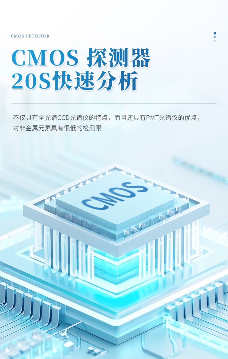 直讀光譜使用日本Hamamatsu公司最先進(jìn)的CMOS信號(hào)采集元件,每個(gè)CMOS可以分別設(shè)置火花的數(shù)量。它采用真空光室設(shè)計(jì)和全數(shù)字激發(fā)光源。該CMOS光譜儀不僅具有全光譜CCD光譜儀的特點(diǎn),而且還具有PMT光譜儀的優(yōu)點(diǎn),對(duì)非金屬元素具有很低的檢測(cè)限。整機(jī)的設(shè)計(jì)合理。它還具有操作簡(jiǎn)便,測(cè)試精度高,長(zhǎng)期穩(wěn)定等優(yōu)點(diǎn)。