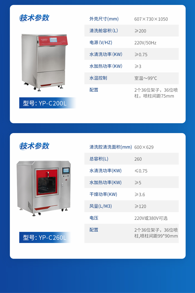 7.1 總容積260L;清洗腔清洗面積600mm×629mm,具有更大的清洗量;
